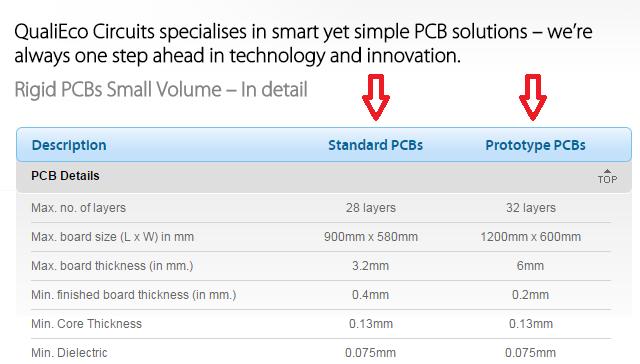 1. QualiEco has separate capability statement for prototype and production. Please ask us if you are not sure which one to refer. It is possible to manufacture small volume PCBs with tighter tolerances so if you require PCBs in small numbers, you may choose our tightest capability.