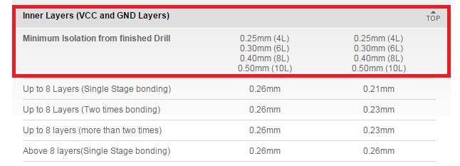 The most important criterion to keep in mind while designing multi-layer PCB is the gap between edge of the hole and nearest copper area (track/pad/pour) in inner layers. For multi-layer PCBs, drilling is performed after bonding so this criterion is extremely critical for all PCB manufacturers.