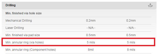 3. Another important factor to consider in your design is the minimum copper and solder mask pad size around holes.