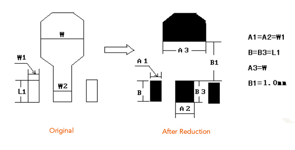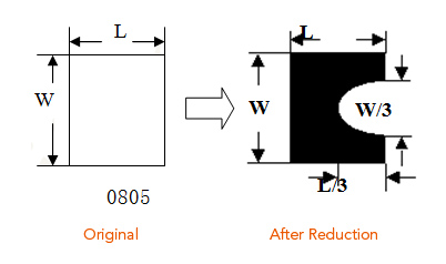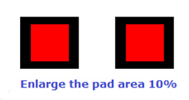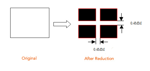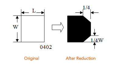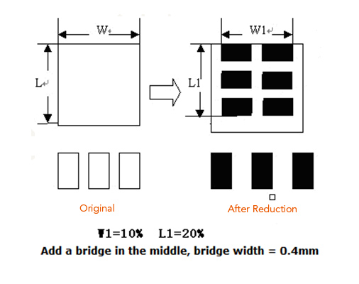 Big pad L >= 4mm and W >= 3mm – pad reduction as follow: